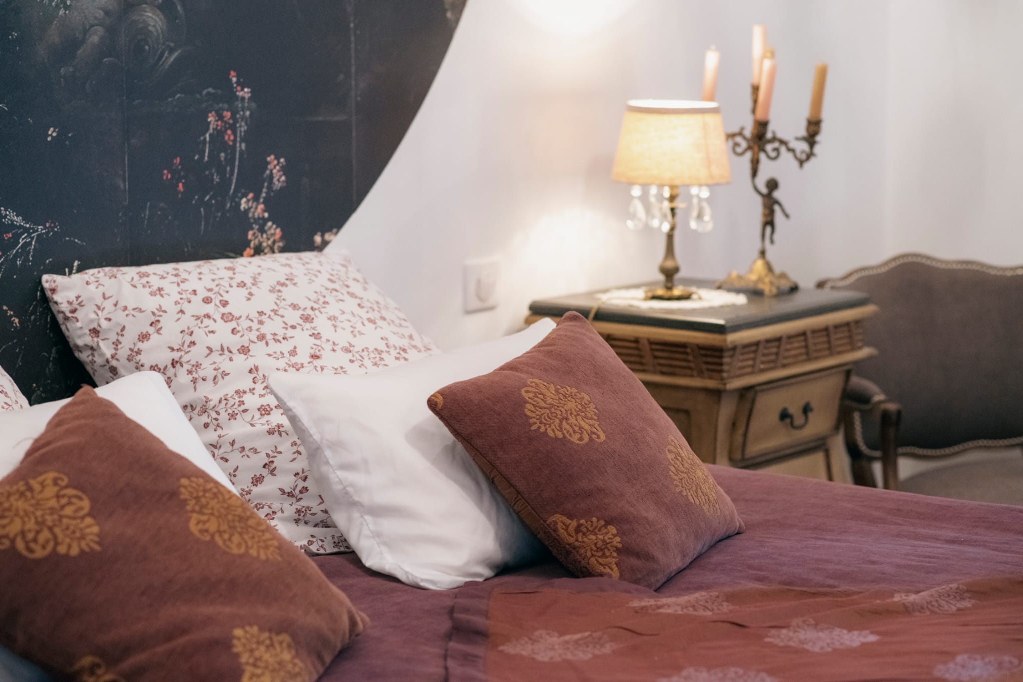 La Chambre "Fragonard" offre un espace généreux de 20m2 pour apprécier le calme et le repos. Le lit somptueux "King Size" vous invite à plonger dans un sommeil réparateur tandis que la touche artistique crée une atmosphère distinctive. Elle est également dotée d'un écran plat pour un moment de détente supplémentaire.